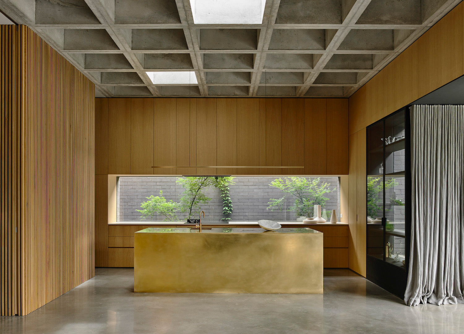We wanted a minimal light that encouraged the architecture, already rich with material, to speak, breathe and age gracefully.